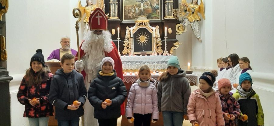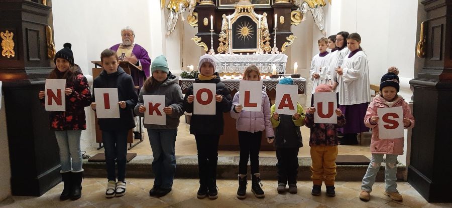 Namensfest des heiligen Nikolaus und Patrozinium am Koppelberg Luhe (rgl). Mit einem Familiengottesdienst feierte die Pfarrei Luhe am Samstag, 6. Dezember, das Namensfest des heiligen Nikolaus und damit verbunden das Patrozinium der Wallfahrtskirche am Koppelberg. Pfarrer Arnold Pirner erläuterte anhand des Altarbilds die bekannten Legenden, die sich um das Leben des beliebten Heiligen ranken. Bei der Predigt durften Kinder die einzelnen Buchstaben seines Namens halten. Pfarrer Pirner und Rita Gleißner gaben dazu Impulse, wie die Christen heute dem Vorbild des heiligen Nikolaus folgen und...
