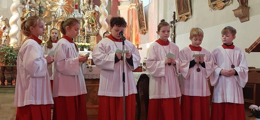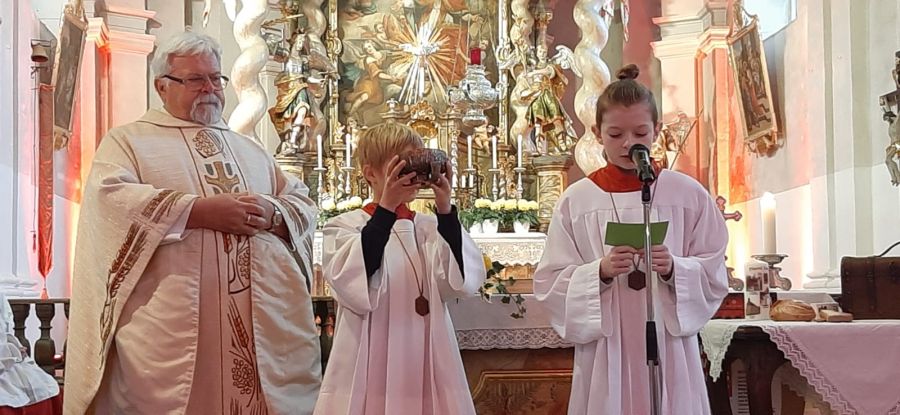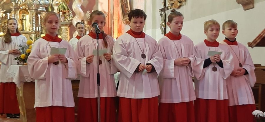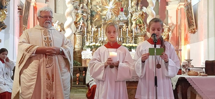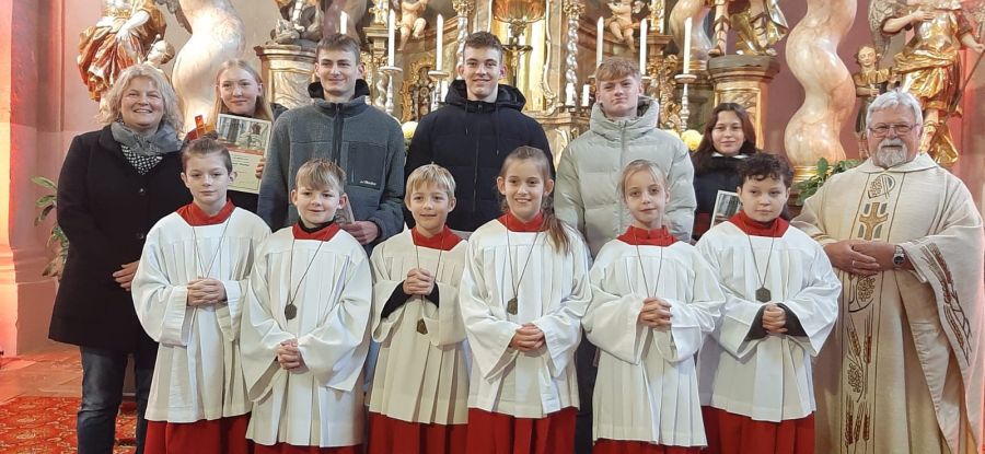Seit einigen Monaten hatten sie sich die Neuen mit ihren Betreuern Georg Hirsch (Luhe) und Simone Ott (Neudorf) eifrig und mit Freude auf ihren Dienst am Altar vorbereitet. Ihnen galt ein herzliches Vergelt’s Gott für die Mühen bei der Ausbildung und Betreuung der Minis.
