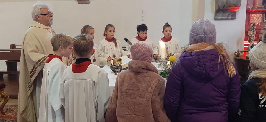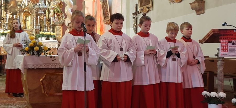 Luhe. Am Christkönigssonntag wurden bei einem feierlichen Gottesdienst in der Pfarrei St. Martin Luhe sechs neue Ministranten offiziell in ihren liturgi-schen Dienst eingeführt. Pfarrer Arnold Pirner begrüßte Julian Baumer, Jonas Braun, Matteo Schmid und Sarah Schulze (für St. Martin Luhe) sowie Franziska Buhr und Jan Trummer (für St. Barbara Neudorf) mit ihren Familien beim Gottesdienst und dankte den Eltern und Großeltern, die die Minis bei ihrem Dienst unterstützen und sie an ihre Einsätze erinnern.