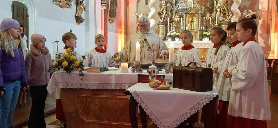 sowie Kilian Kellermann und Fabian Post nach 7 Jahren aus dem Dienst am Altar aus. Pfarrer Pirner dankte ihnen für ihren großen Einsatz und für ihre Zuverlässigkeit und Treue im Dienst am Altar über so viele Jahre. Dafür gab es Applaus von den Gläubigen sowie Geschenke und Urkunden zum Dank und zur Erinnerung.