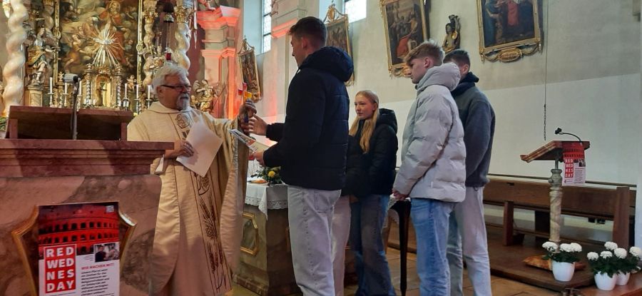 Pilgerweg der Hoffnung und „Red Wednesday“ in Luhe Luhe. Am Mittwoch, 19. November, versammelten sich rund 50 Gläubige aus der ganzen Seelsorgegemeinschaft um 20 Uhr am Pfarrheim St. Martin zum „Pilgerweg der Hoffnung“ – einer Aktion zum Heiligen Jahr 2025. Pfarrer Arnold Pirner begrüßte alle Teilnehmenden, die bei winterlichen Temperaturen zu diesem besonderen Abend gekommen waren. Alle erhielten ein Prozessionslicht und ein Lied- und Gebetblatt. Pfarrer Pirner und Rita Gleißner gestalteten den Pilgerweg, der in drei Stationen vom Pfarrheim zunächst zum Pfarrhof und dann zum Kirchplatz...